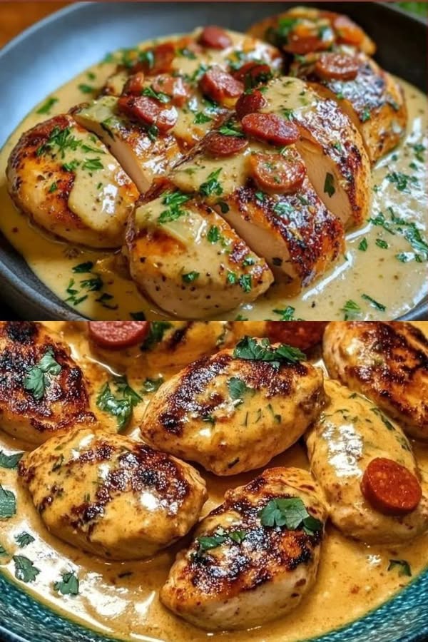 Hähnchenstreifen in cremiger Chorizo-Sauce vereinen die Zartheit von Hähnchenfleisch , den köstlichen Geschmack einer cremigen Sauce und die Würze von Chorizo . Dieses schnelle und leckere Gericht eignet sich perfekt für ein gemütliches Familienessen .
