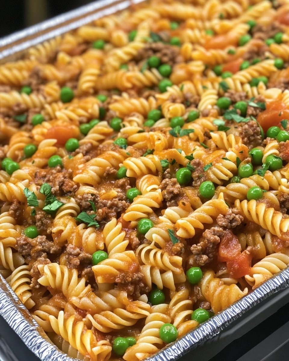 Nudelauflauf mit Erbsen und Hackfleisch