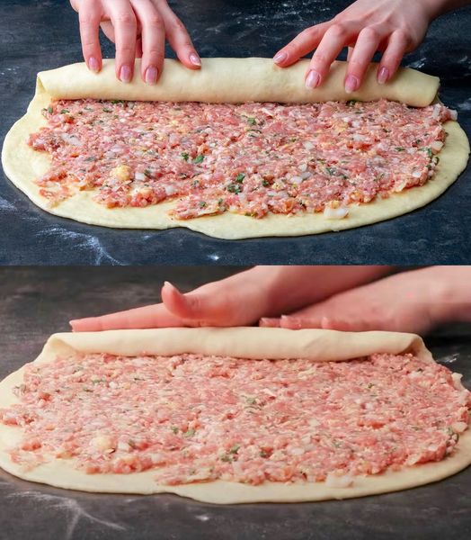 Teig eingerollt mit Hackfleisch in 15 Minuten in Backofen